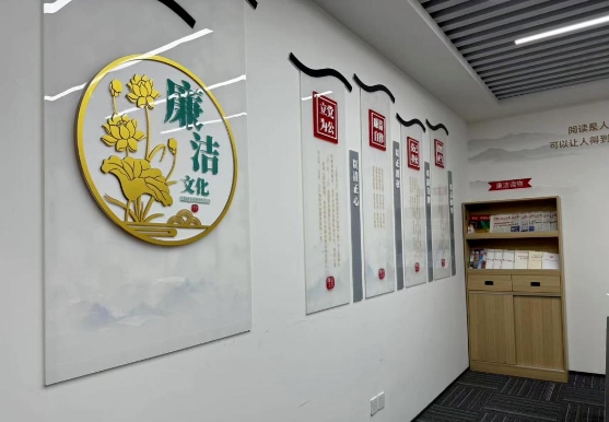 (三)涵养廉洁文化,塑风清气正政治生态。推进廉洁文化建设,营造反腐倡廉的文化氛围,设立“廉洁文化”主题会议室,布置廉洁文化墙,标识反腐倡廉名言警句,并设置廉洁图书角,摆放《中国共产党纪律处分条例》《中国共产党党内重要法规汇编》等廉政书籍,订阅《中国纪检监察》杂志报刊等,发放《党员干部纪律教育学习读本》,让讲规矩、守纪律的优良传统在公司蔚然成风,营造崇廉尚廉的良好氛围。