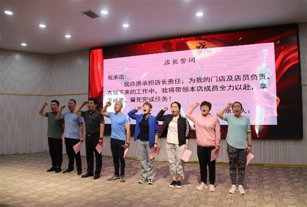 为激发全体员工齐心协力、共同奋进的信心和目标既定、势必达成的决心,以钉钉子精神狠抓落实,开创工作新局面,在竞拍活动中开展激人奋进的军令状签署仪式。现场77名店长纷纷签署军令状,2021年度经营结束后,根据现管门店收入完成情况,对竞拍考核合格者予以晋升。