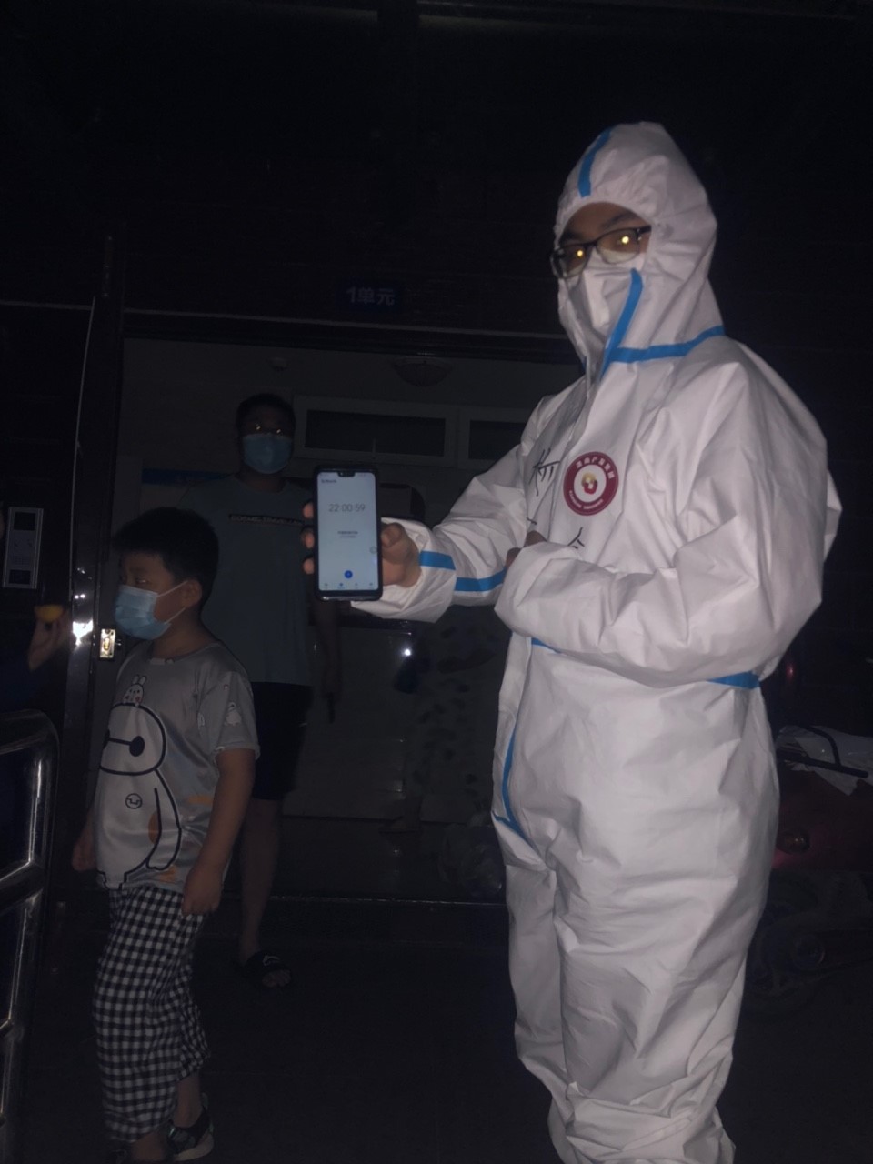 集团支援天桥区滨河雅居的下沉人员由翟思成带队,带领郭正亮、杜瑞帅、赵士民、杨世兴、冯鹏飞等5名志愿者,自4月27日进驻滨河雅居社区以来,他们听从社区安排,进行核酸检测维持秩序,人员摸排、统计数据等工作。“每天下班都得晚上10点半了”, 翟思成说,为保证社区居民核酸检测不漏一人,虽然大家的居住地距离滨河雅居都很远,但还是克服重重困难按时到岗,尽职尽责地完成社区工作。特别是自4月28日以来,滨河雅居楼栋出现密接和次密接,需要24小时管控,金钟集团的志愿者白天维持核酸检测秩序、给管控居民送菜送食品,晚上还要值夜班、进行住户摸查,条件艰苦、工作劳累,但是志愿者们没有怨言、只有担当,他们用实际行动践行国企责任,使命担当。