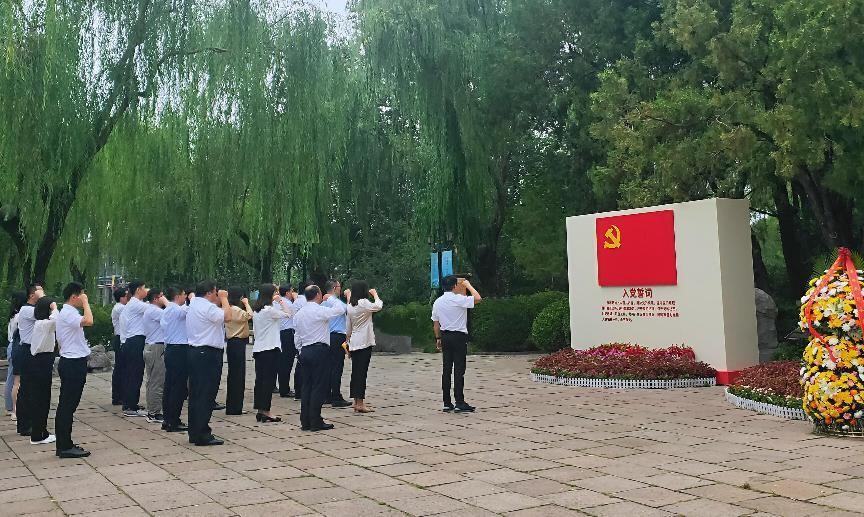 在美铭广场,党员干部们一同为王尽美、邓恩铭纪念石雕献花。随后,由集团党委委员、纪委书记卢刚带领全体党员干部,现场宣誓,重温入党誓词,回顾入党宣誓时的庄严承诺和坚定决心,提醒全体党员始终不忘初心,牢记作为党员的责任和使命,时刻以优秀共产党员的标准严格要求自己,遵守党的纪律,积极投身党的事业,发挥党员的先锋模范作用。