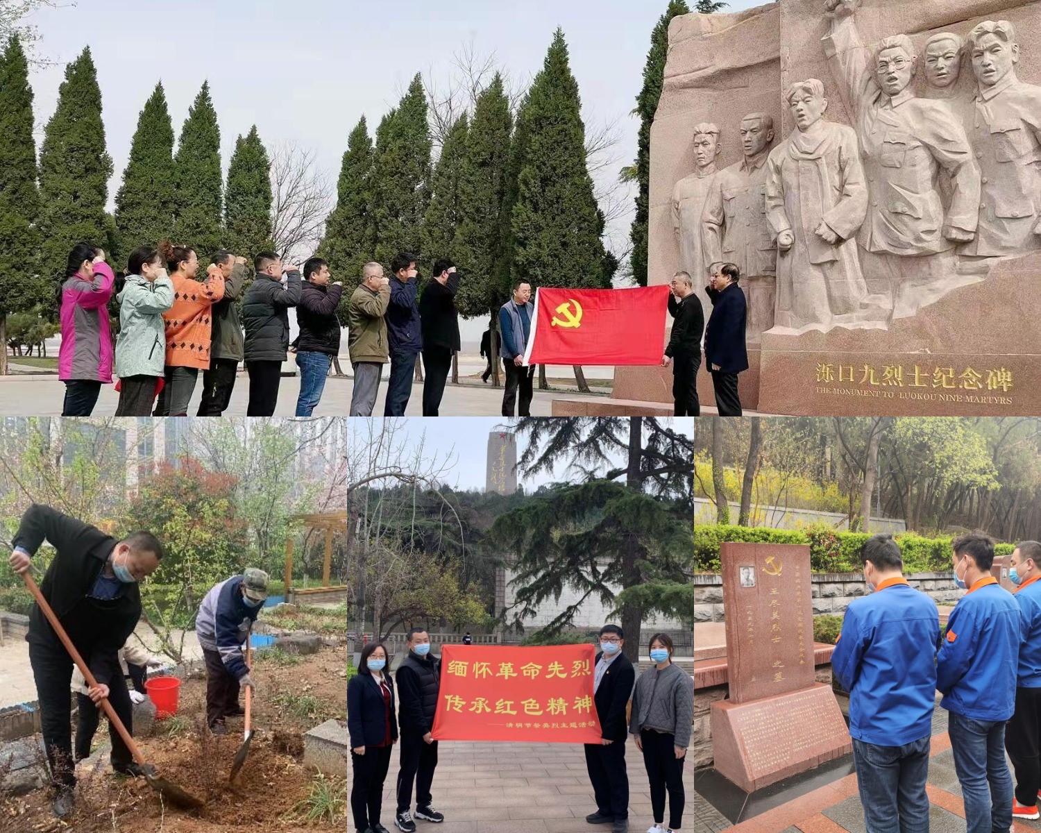学习党史,缅怀先烈,传承红色基因,在加强疫情防控的前提下,产发企管集团、工程咨询院、金钟科技集团等前往泺口九烈士纪念碑、济南市英雄山革命烈士陵园开展了革命文化现场教育活动。党员代表们在革命烈士纪念碑前缅怀先烈、寄托哀思默哀,表达崇敬之意。此外,园区集团还通过组织职工参加植树活动等形式寄托哀思,表达对先烈的敬意。