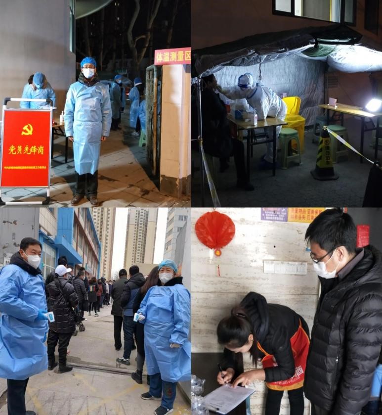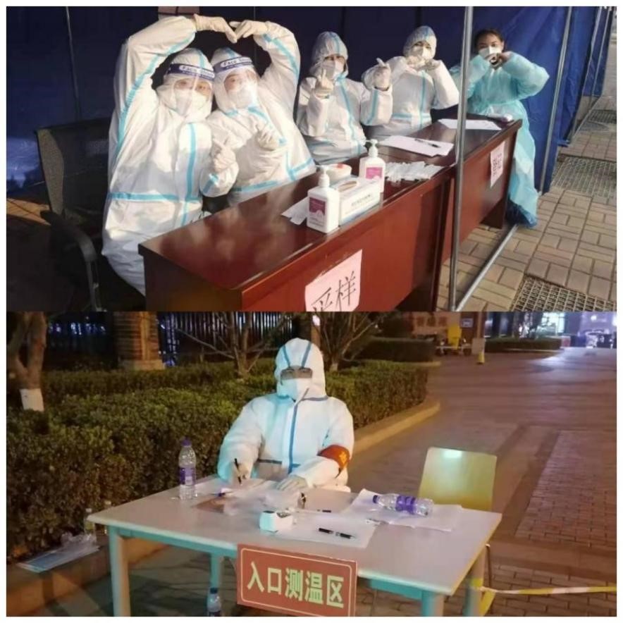 自接到通知以来,澳利集团抗疫先锋队成员郝永、王美玲等下沉剑桥社区、燕文社区,协助街道人员做好排查流调工作。时间紧、任务重,虽不是白衣天使,却依然披挂上阵,始终保持到岗即战的行动力。在济南市全员核酸检测演练工作中,先锋队扎帐篷、检测器械,为核酸检测做好充分准备。检测过程中,先锋队手持测温设备,坚守检测入口,身穿密不透风的防护服一站就是十几个小时,无论多晚都坚持为每一位市民检测。清明虽至疫情未止,队员们的工作也未结束,依然坚守在助力社区的疫情防控大战中,为社区居民的健康安全保驾护航!